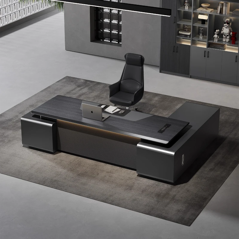 Supervisore leggero di lusso moderno Boss Manager Scrivania da ufficio direzionale di lusso con cassetti portaoggetti per lampade Scrivanie per computer Libreria grande