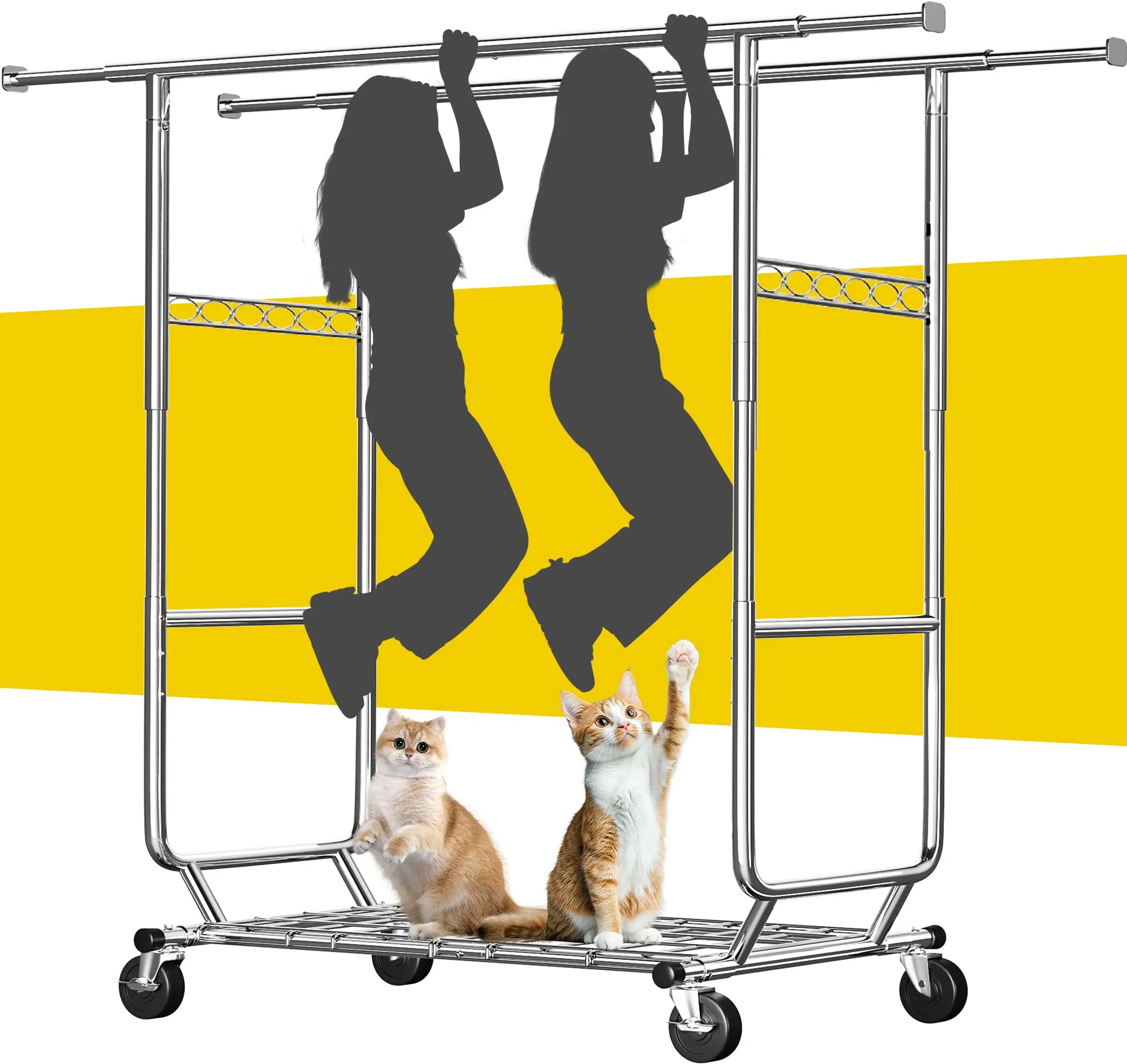 Appendiabiti di Alta Gamma Resistente, con Doppia Asta Girevole a 360° ° Ruote Bloccabili, Altezza e Lunghezza Regolabili