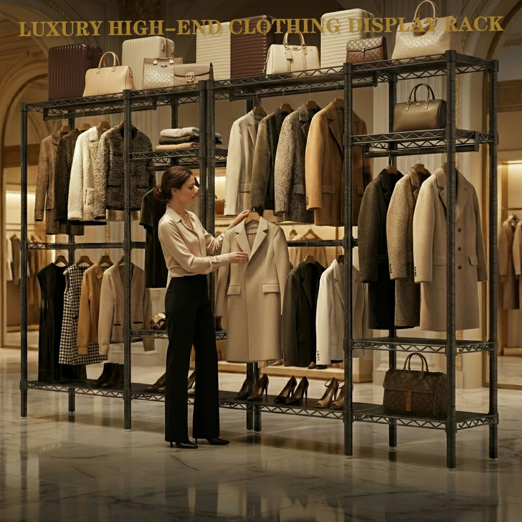 Organizzatore per Cabina Armadio Resistente 231CM 1600LBS, Appendiabiti Modulare in Metallo 4x4, Scaffale per Abiti a L Staccabile per Negozi al Dettaglio