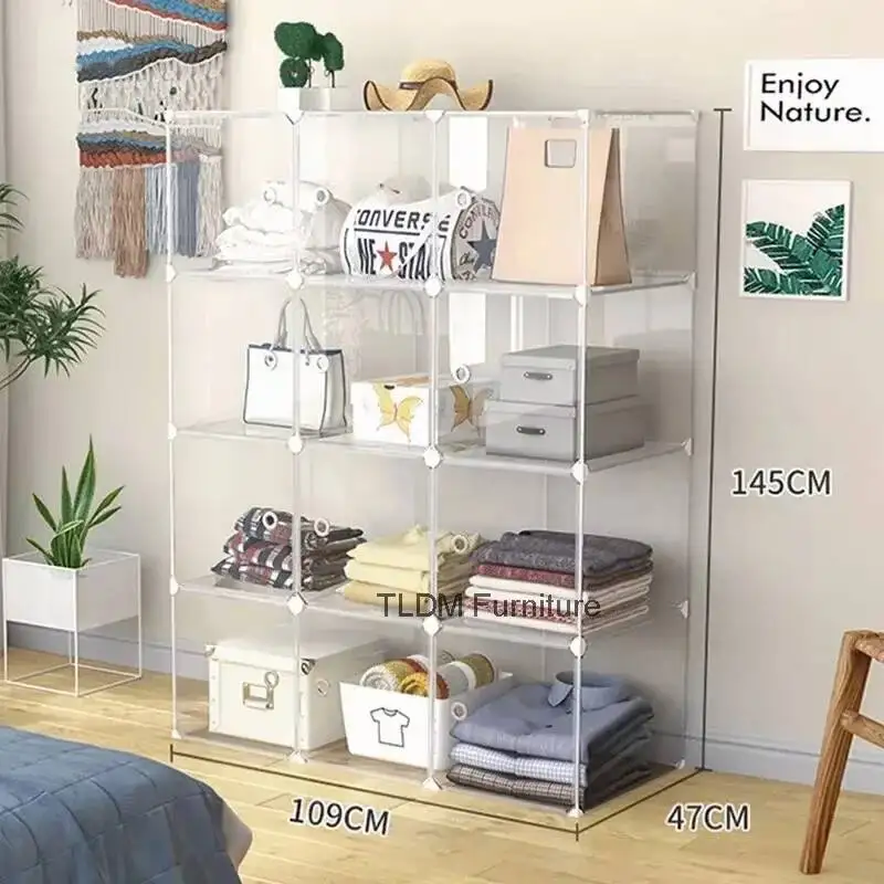 Armadi Trasparenti Moderni per Camera da Letto e Soggiorno, Contenitore di Stoccaggio Semplice in Plastica, Armadio Piccolo per Casa e Dormitorio E Z