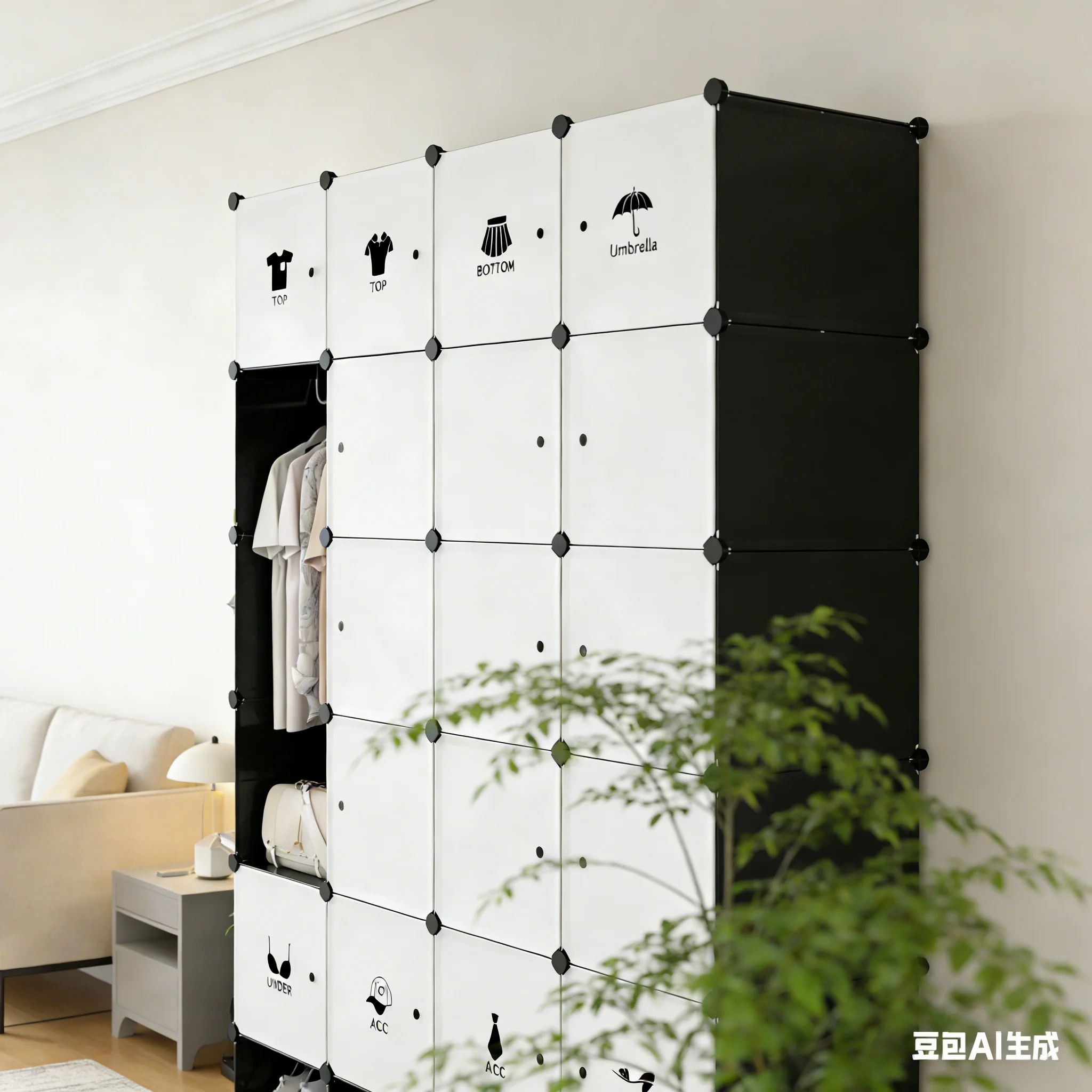 Armadio AOLIVIYA moderno minimalista in plastica con scaffale portaoggetti, facile da montare, per casa, camera da letto, affitto, dormitorio, resistente.