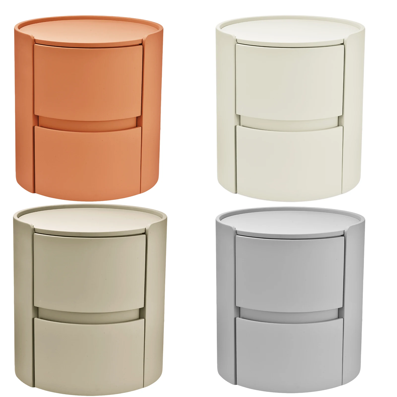 Comodino rotondo, comodino moderno in legno massello, mobiletto portaoggetti a 2 cassetti per casa, ufficio, camera da letto