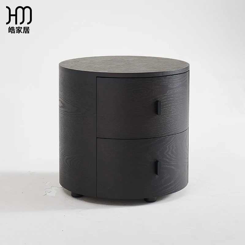 Comodino moderno e minimalista in legno massello comodino rotondo nero in stile italiano per camera da letto e soggiorno