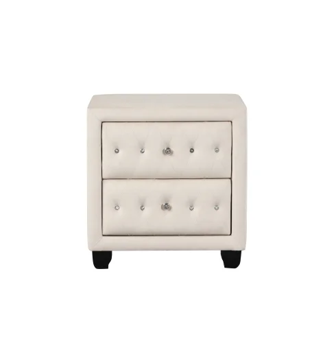 Comodino portaoggetti in stile moderno color crema con 2 cassetti, in tessuto di velluto imbottito con trapuntato in cristallo