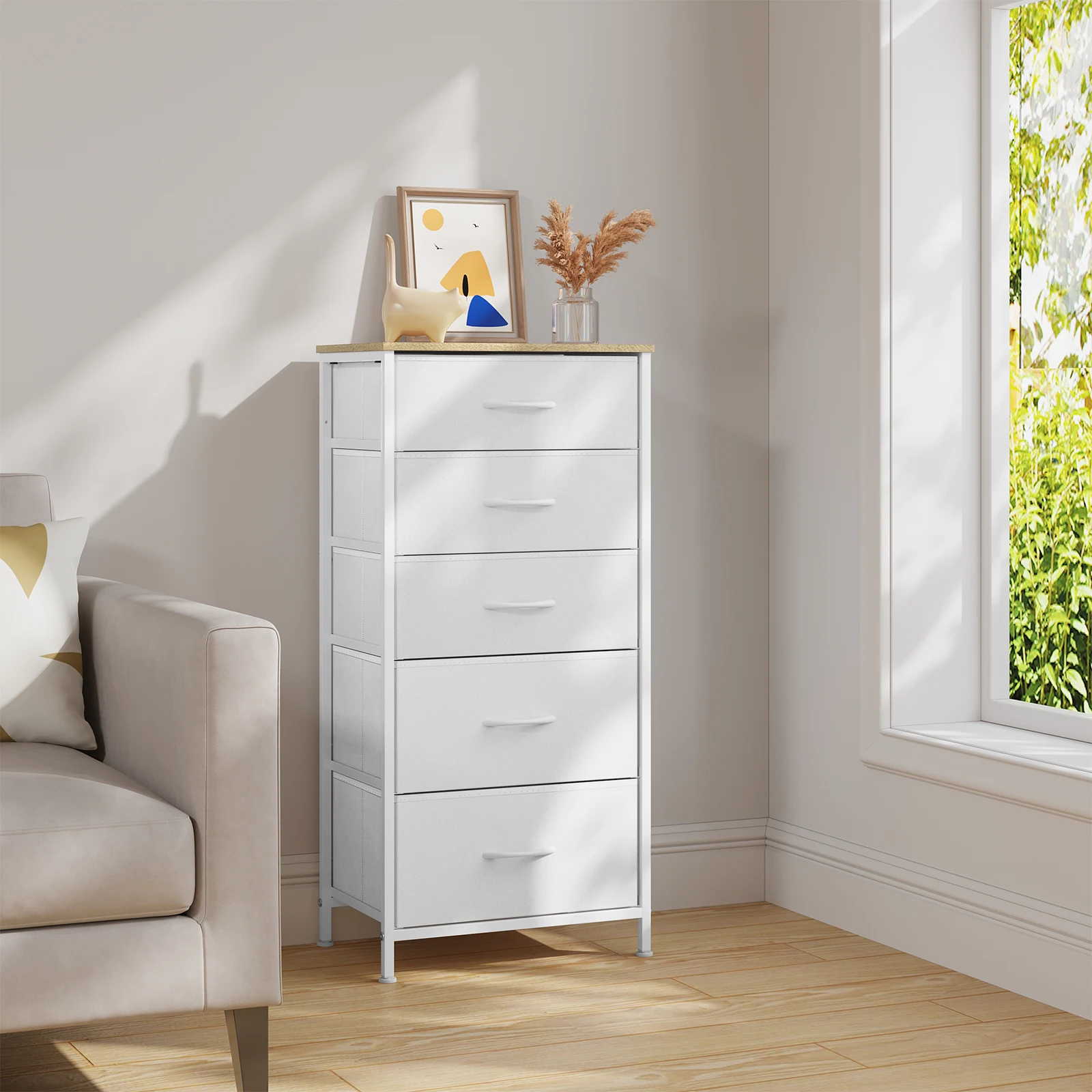 WOLTU Cassettiera in tessuto Organizzatore per armadietto con 5 cassetti Credenza impilabile per soggiorno, corridoio, camera da letto
