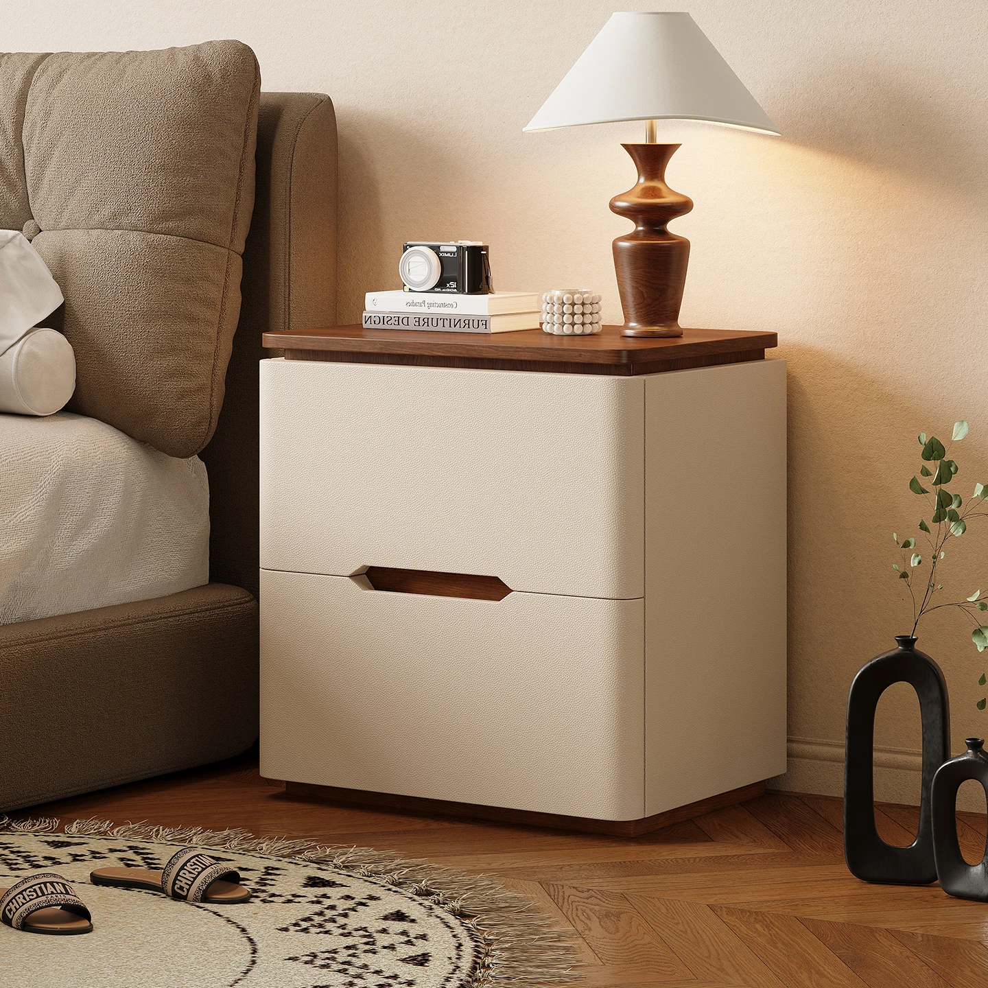 Comodino grigio Comodino curvo Moderno beige Comodino rotondo Legno bianco Moderno nordico