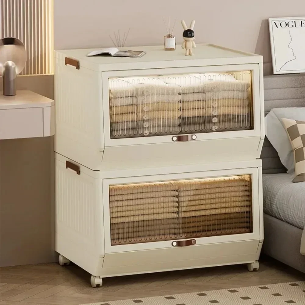 v Scatola portaoggetti pieghevole Armadietto portaoggetti multistrato con coperchio ribaltabile e ruote Armadio portaoggetti pieghevole mobile senza installazione