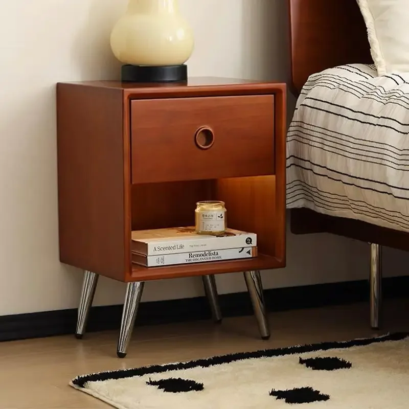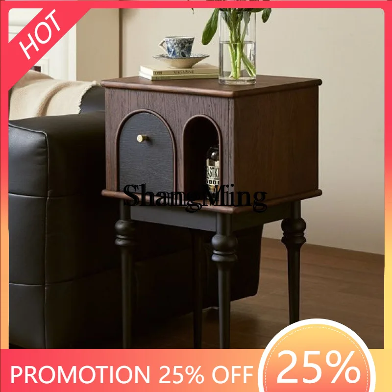 Comodino in legno massello in stile medievale, lusso leggero, sensazione di fascia alta, piccolo comodino con crepe ultra strette, mobile basso