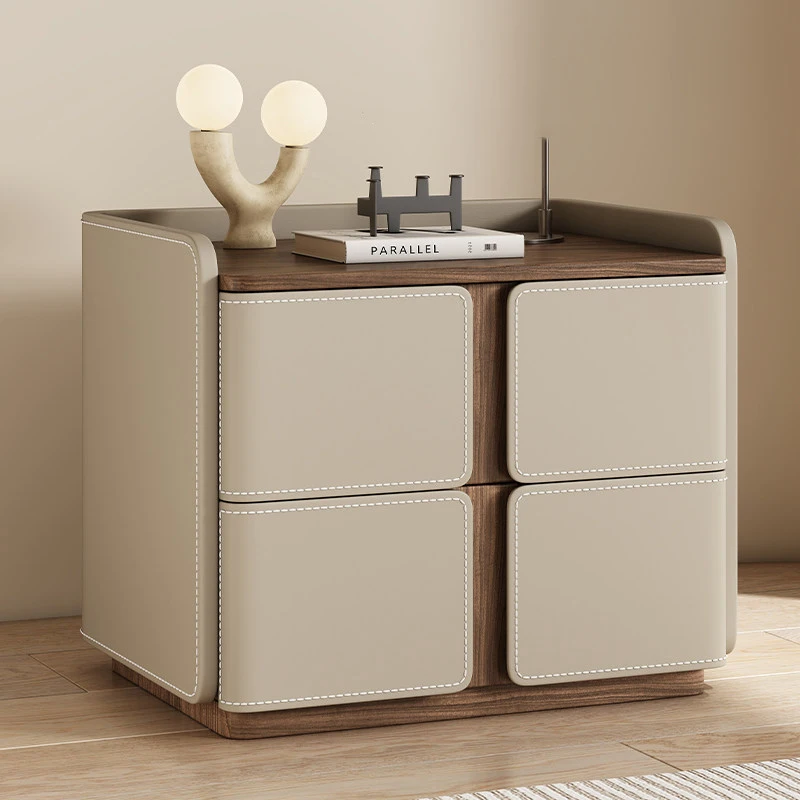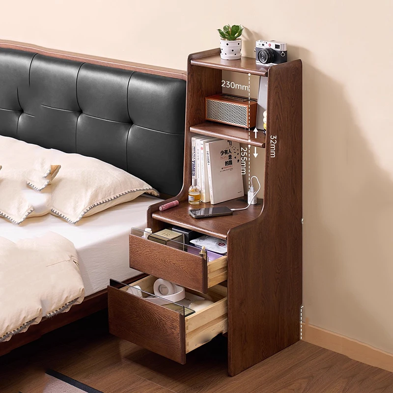 Comodino leggero di lusso in legno massello per camera da letto Moderno semplice armadio portaoggetti italiano minimalista a tre secchi
