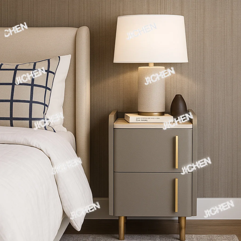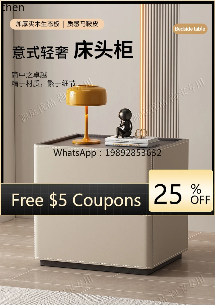 Comodino Comodino per camera da letto moderno, leggero, di lusso, semplice, in legno massello, per la casa, in pelle, per riporre e installare