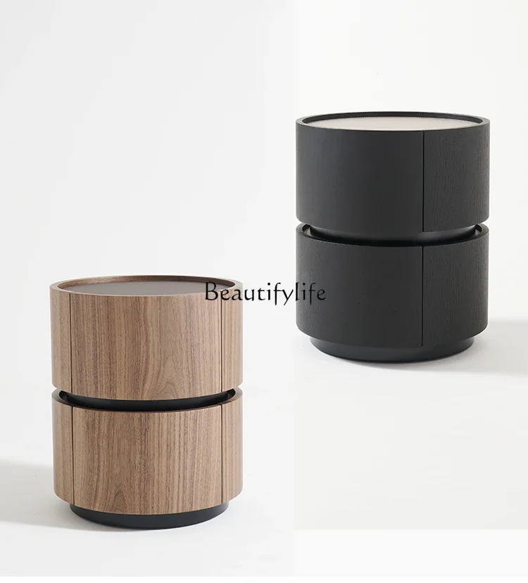 LJY-Comodino minimalista italiano in legno massello, piccolo e moderno armadio di stoccaggio di fascia alta di design in pelle di sella rotonda