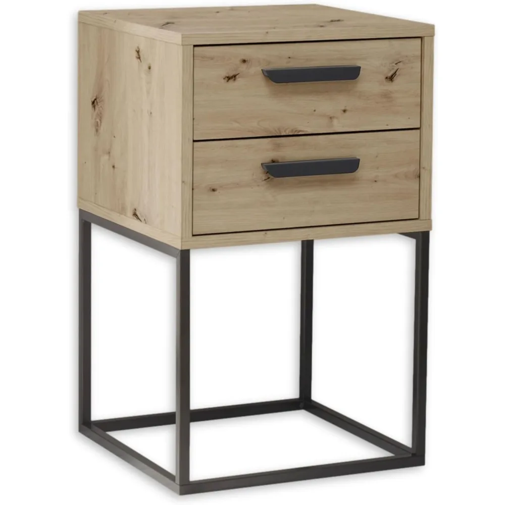 Trading Suna Aspect chêne Artisan – Table de Chevet Moderne con cassetti et Structure en métal Noir, Bois d'ingénierie, 4