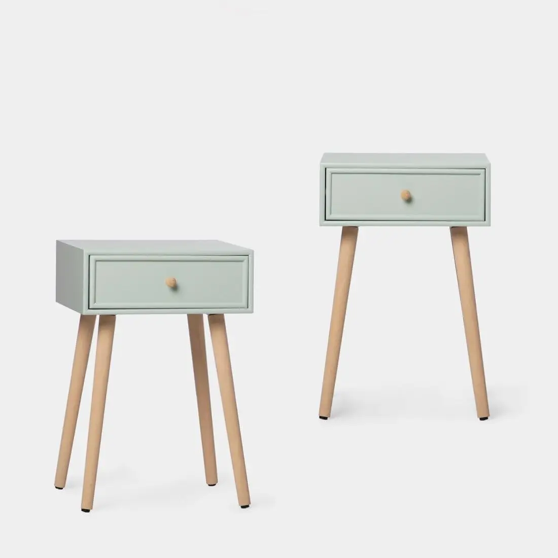 Comodino a 2 cassetti con finitura menta, mobiletto contenitore per camera da letto, personalizzabile