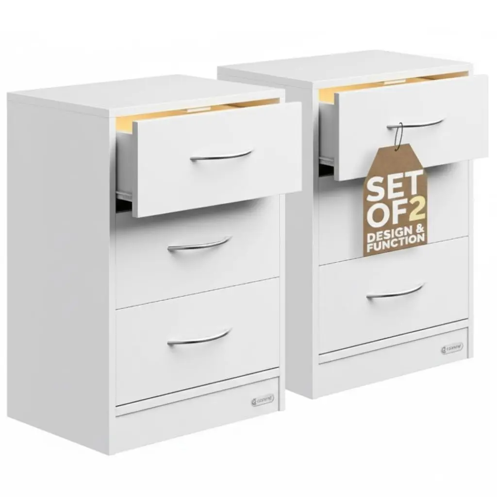 Comodino con Stazione di Ricarica, Set di 2, 3 Cassetti, 2 Prese AC e 2 Porte USB, per Camera da Letto e Studio, Giallo Paglia, Personalizzabile