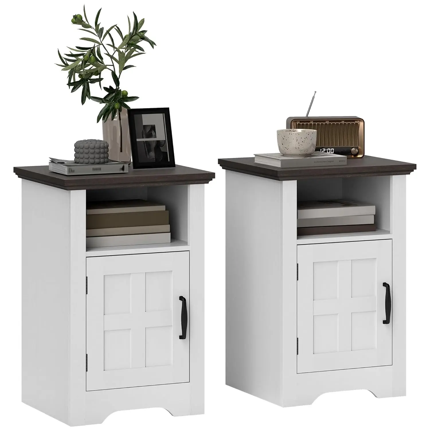 Set di 2 Comodini Rustici Stile Barn Door, Tavolino con Ripiano Aperto per Camera da Letto e Soggiorno 40x35x60cm Bianco, Personalizzabile