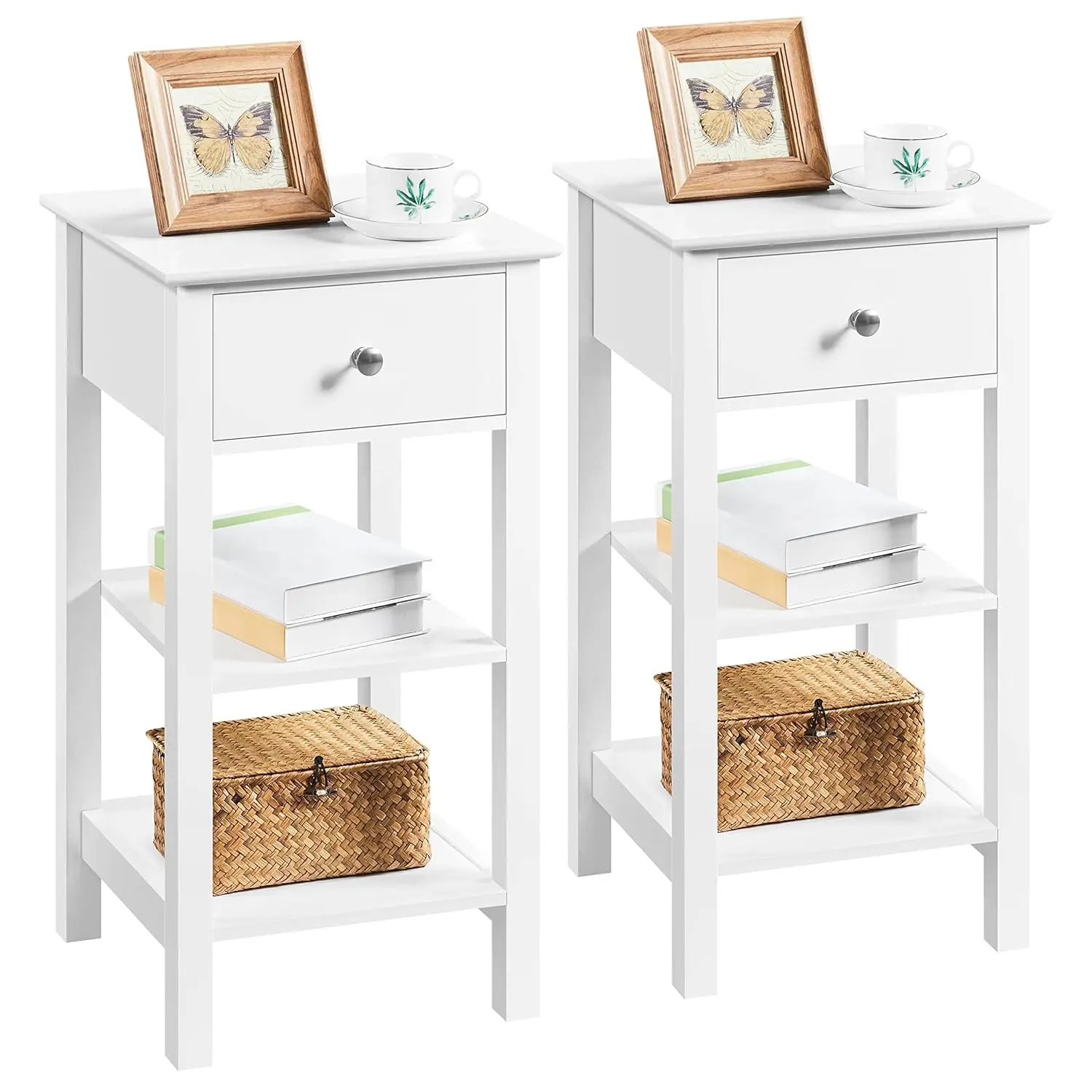 Comodino alto con cassetto e 2 ripiani in MDF per camera da letto, 35x35x70cm, personalizzabile (2 pezzi)