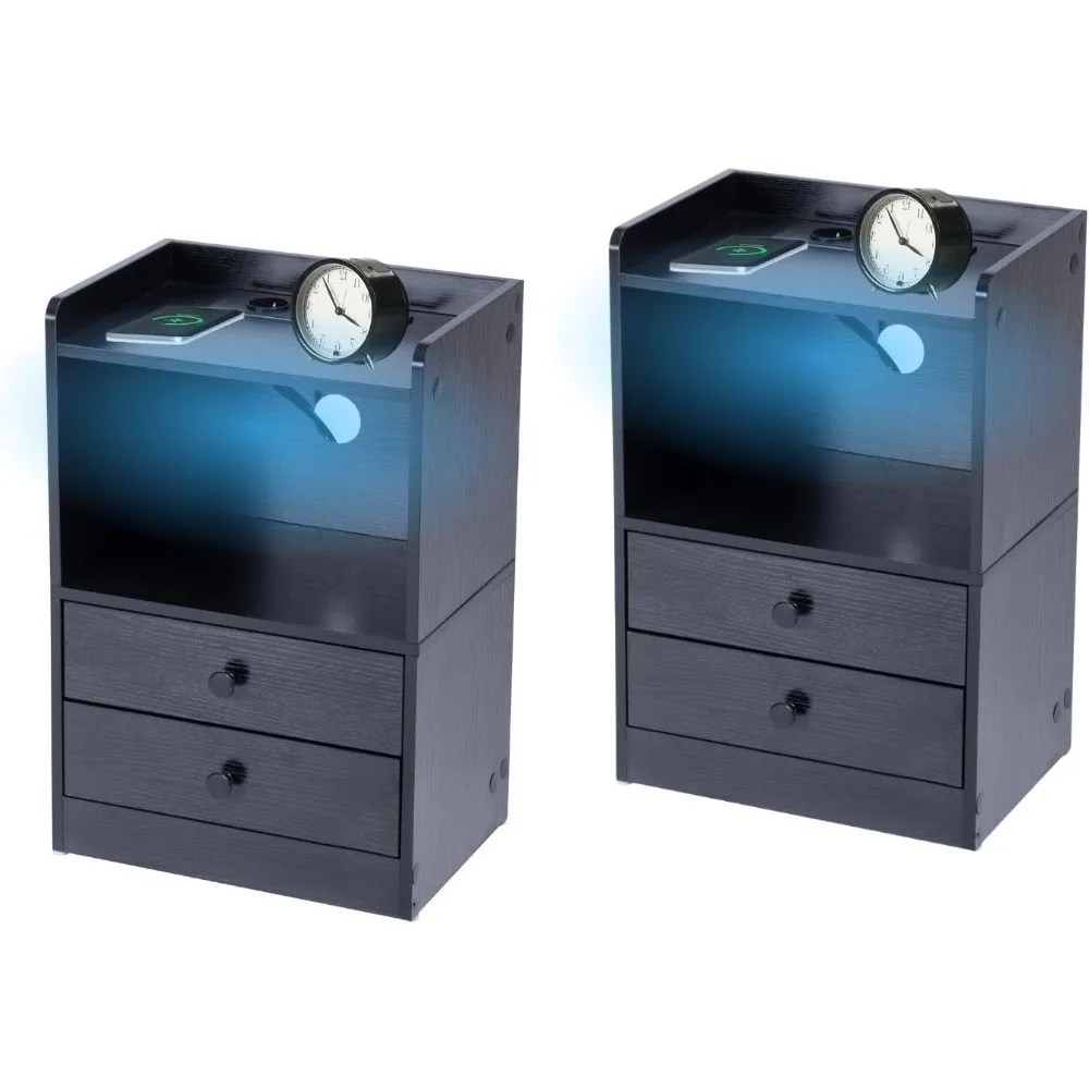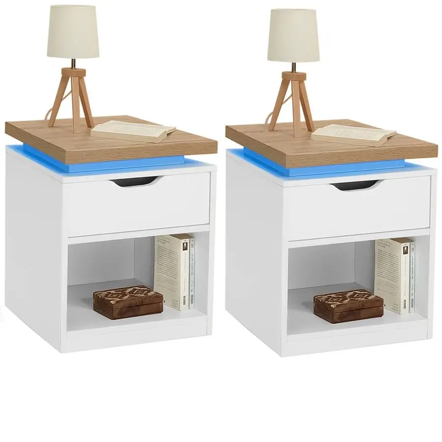 Table de Chevet LED, 16 Couleurs, illuminazione LED Intelligente, 2 Prises de Charge e 2 Prigioni USB, 2 cassetti, vers Cham