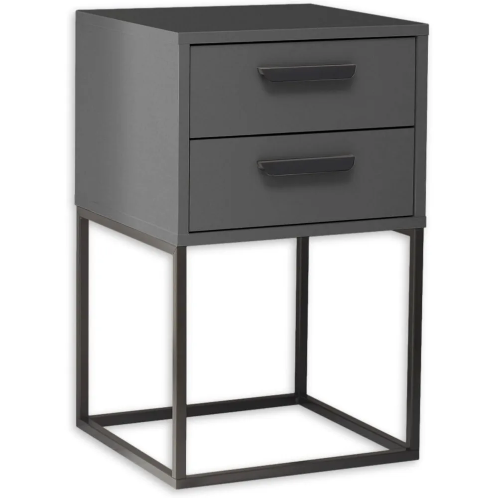 Trading Suna en Graphite-Table de Chevet Moderne con cassetti et Struttura en métal Noir, Bois d'ingénierie, 40 x 65 x 38