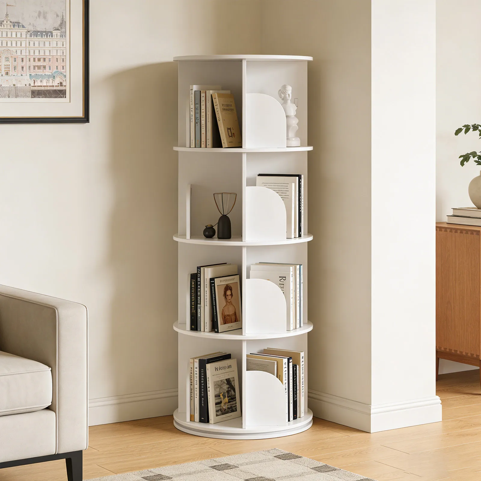 Salvaspazio 360 ° Libreria Girevole, Scaffale Rotante a 2/4 Ripiani, Espositore Bianco per Cameretta Bambini