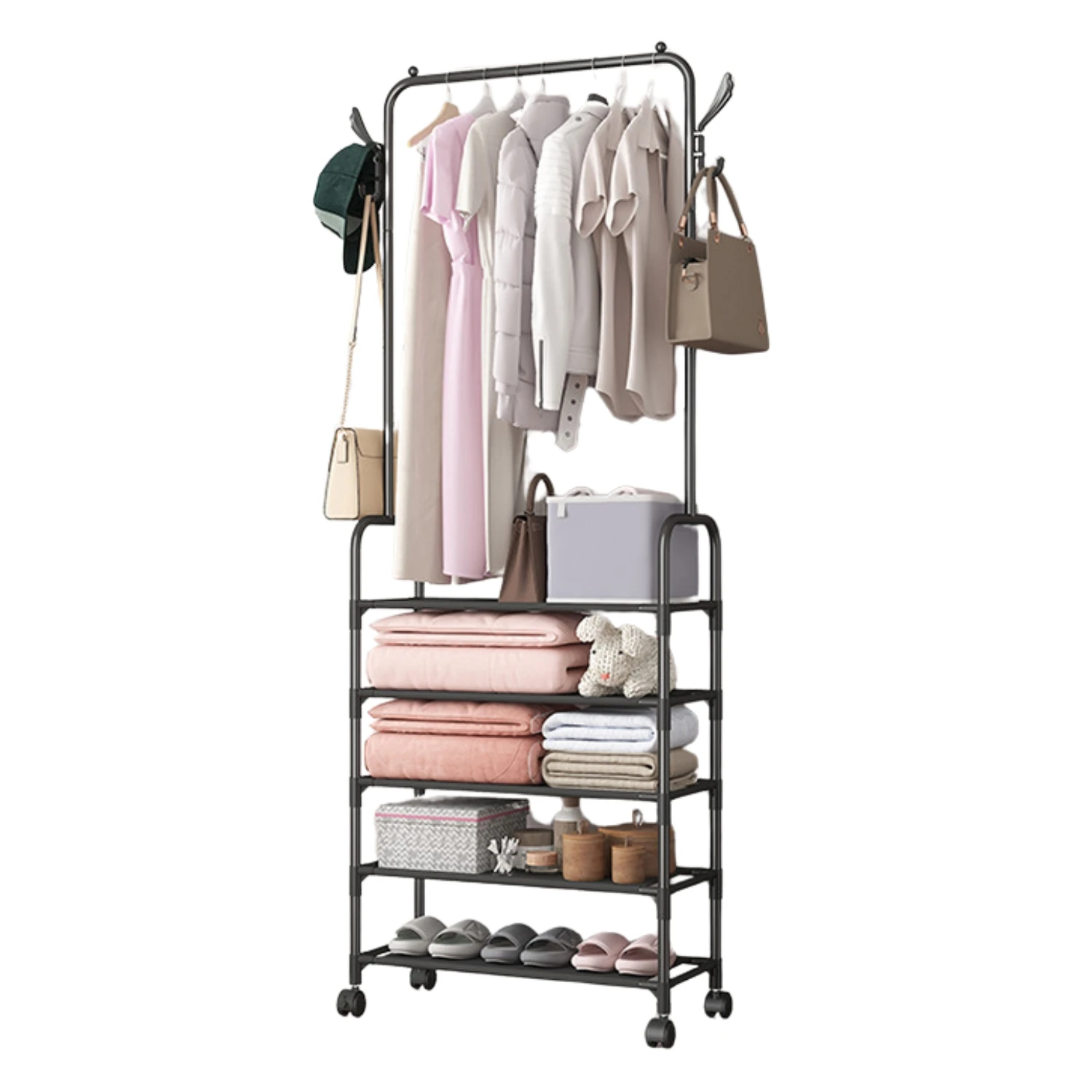 Appendiabiti su Ruote, Robusto Portabiti con Ruote e Ripiano Inferiore per Appendere Vestiti