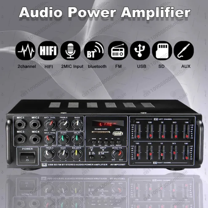 Amplificatore BT 325BT 8000W 110/220V Stereo Digitale con Supporto USB SD FM DVD AUX Ingresso Microfono a 4 Vie con Telecomando