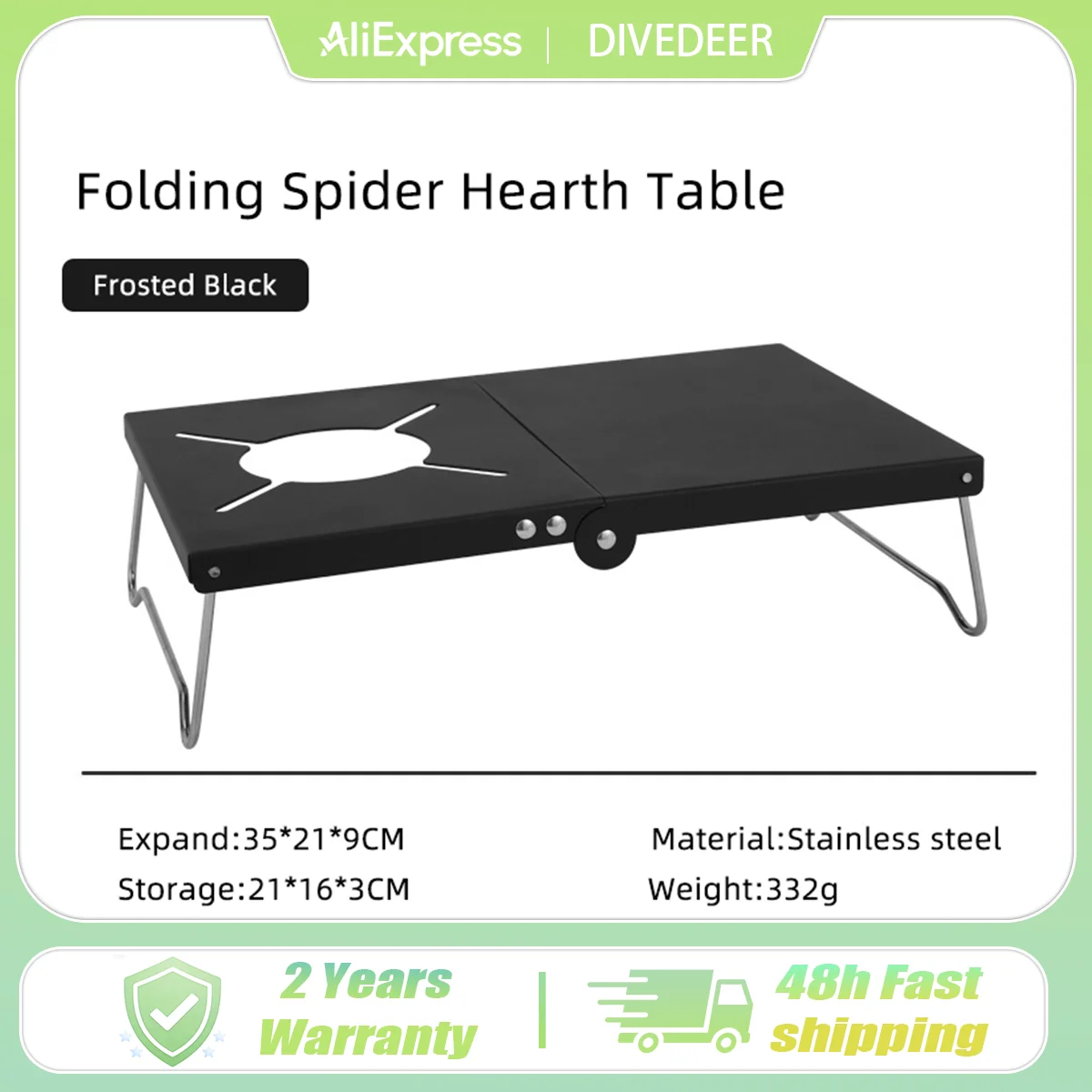 DIVEDEER Tavolo da campeggio per picnic all'aperto con ragno, pieghevole, portatile, mini tavolo isolato in alluminio, supporto per fornello a gas per barbecue riscaldato