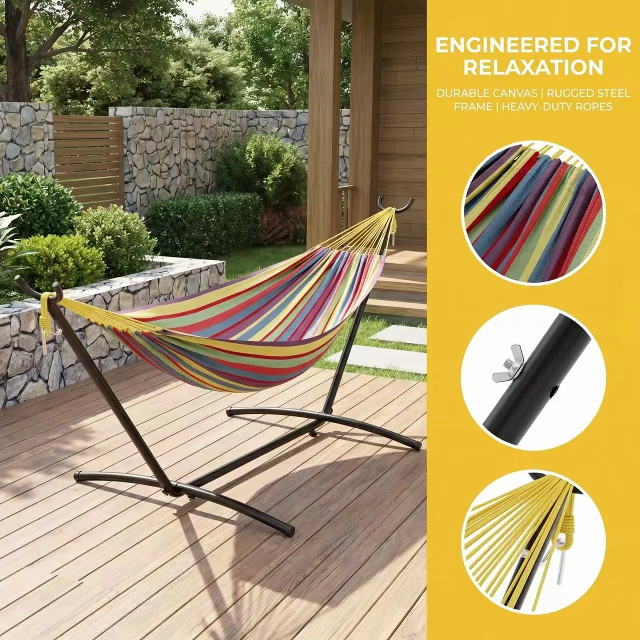 Amaca doppia con supporto in acciaio resistente, letto sospeso portatile per esterni e interni, con borsa per il trasporto, capacità 450 libbre