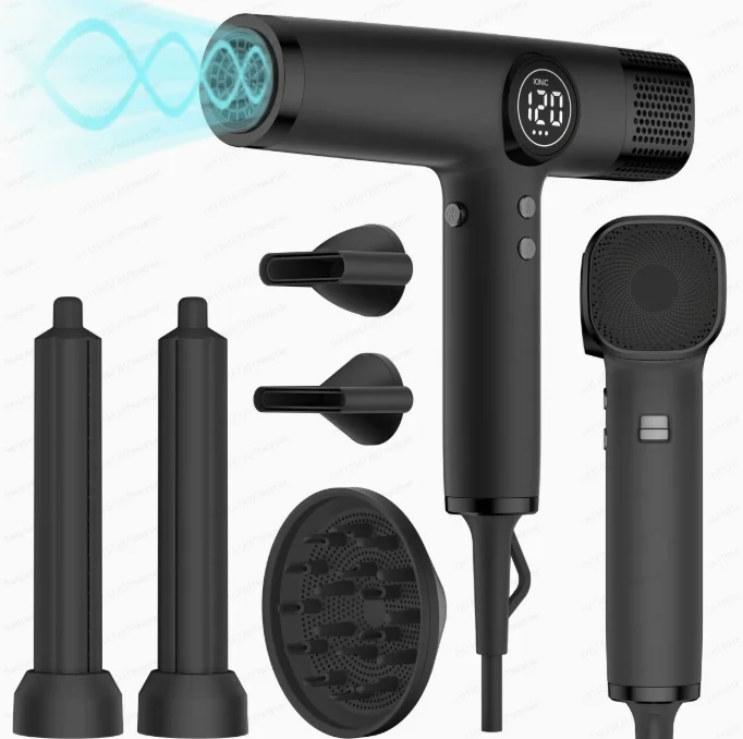 Asciugacapelli ad alta velocità da 110.000 giri/min, a ioni negativi, silenzioso, senza pale, ad alta potenza, caldo e freddo, senza spazzole