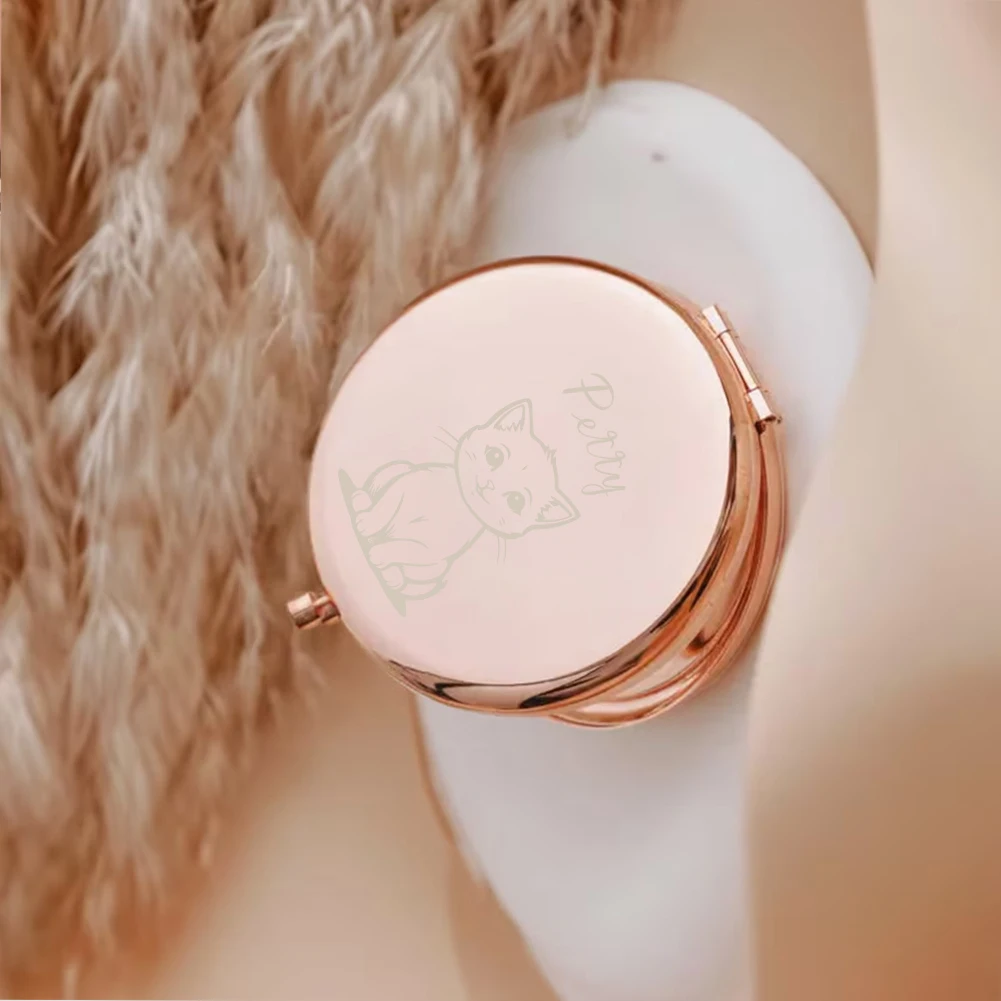 1 pezzo Specchietto da trucco personalizzabile con nome, a forma di gatto addormentato, pieghevole, tascabile, rotondo, regalo di compleanno
