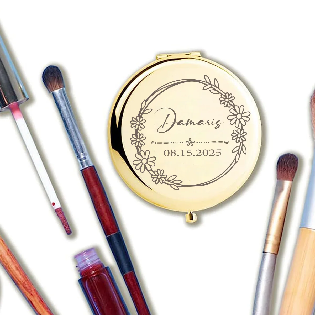 Specchio Pieghevole Creativo con Testo Personalizzato e Nome, Specchio per Trucco, Souvenir per Battesimo