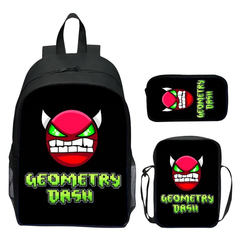 Set zaino per bambini da 16 pollici, geometria dash, zaino per la scuola elementare, zaino per l'asilo, borsa a tracolla, astuccio