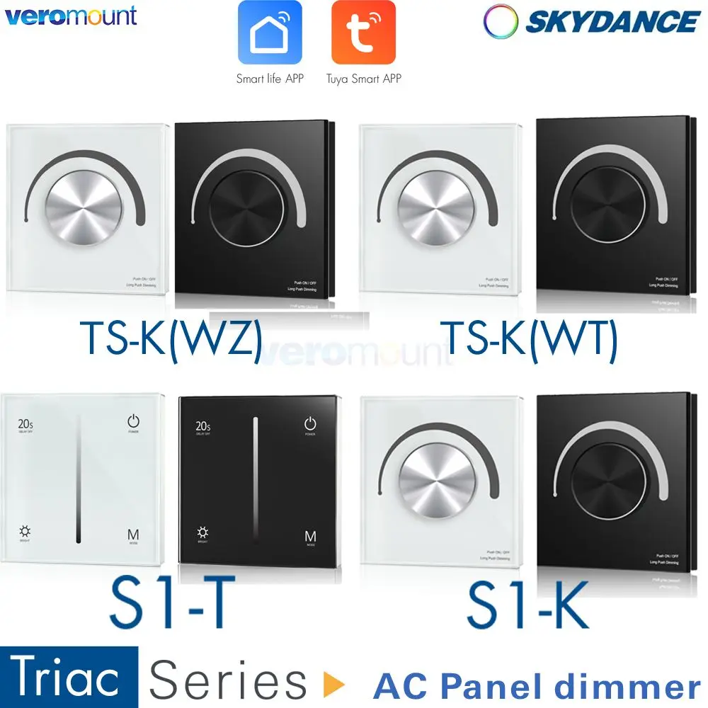 Dimmer a Pannello Triac AC Skydance 110V 220V 1.5A 360W, Interruttore Dimmer LED Rotativo con Pannello Touch in Vetro KS S1-K S1-T TS-K(WT) TS-K(WZ) APP