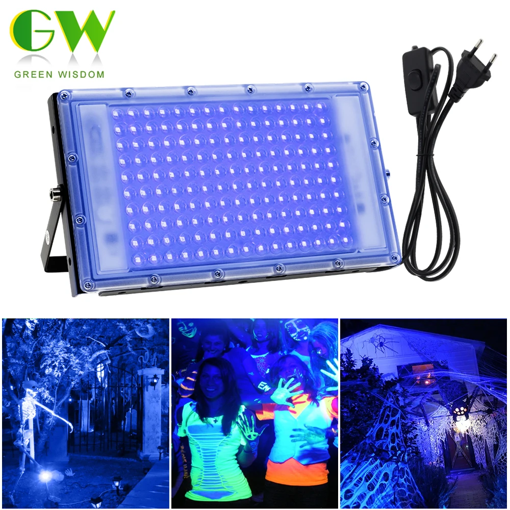 50W 100W 150W Pro Ultravioletto 395nm Lampada UV Proiettore LED 220V Luce nera fluorescente per Halloween Party prom Casa stregata