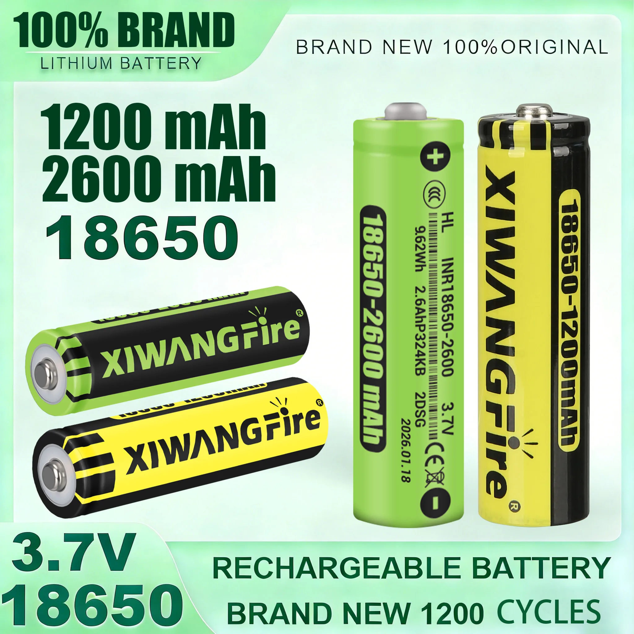 XIWANGFIRE Batteria al Litio Ricaricabile 3.7V 18650 2600/1200mAh per Torcia, Batterie a Testa Appuntita, 100% Nuove Originali