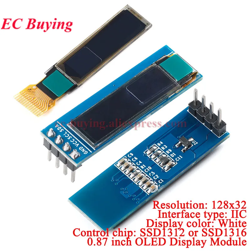 1Pc-5pcs 0.87 pollici 0.87 "Schermo LCD Bianco Modulo Display OLED SSD1316 IIC I2C 12832 Risoluzione 128*32 Progetti Elettronici FAI DA TE