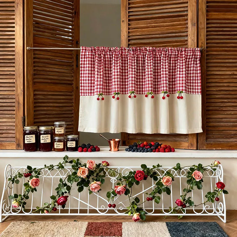 1PC giapponese e coreano classico plaid tenda da caffè decorazione ciliegia rossa mezza tenda corta oscurante per soggiorno camera da letto cucina