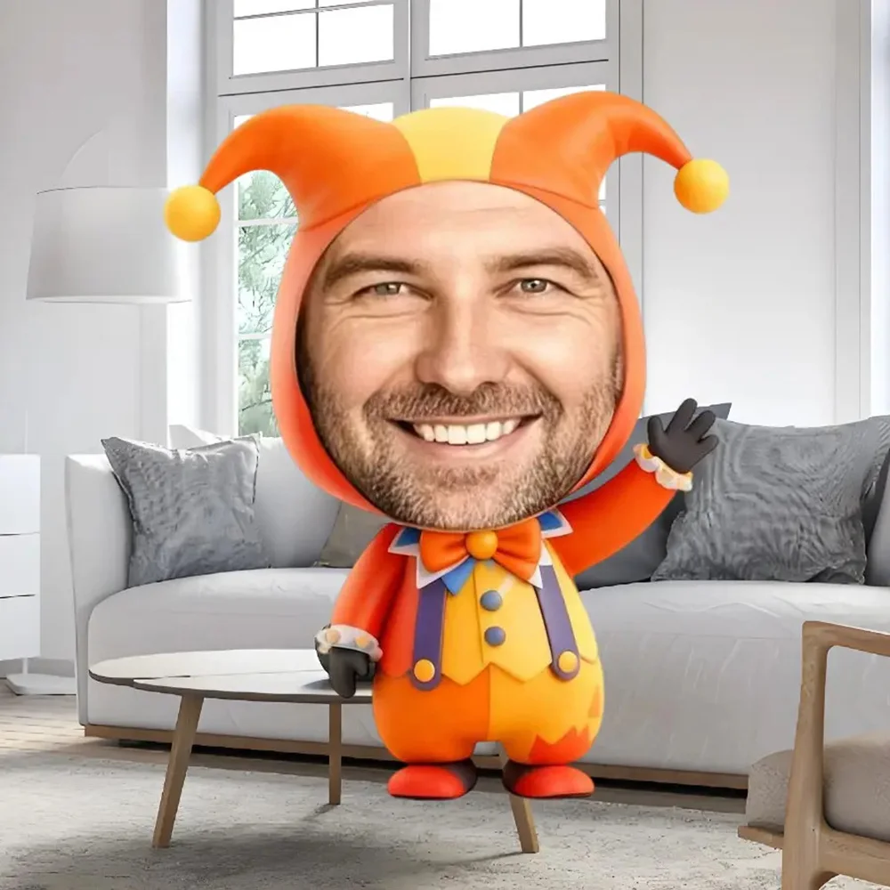 Cuscino personalizzabile a forma di clown dei cartoni animati con grazioso design del viso, stampa fronte-retro fai-da-te, regalo essenziale per San Valentino