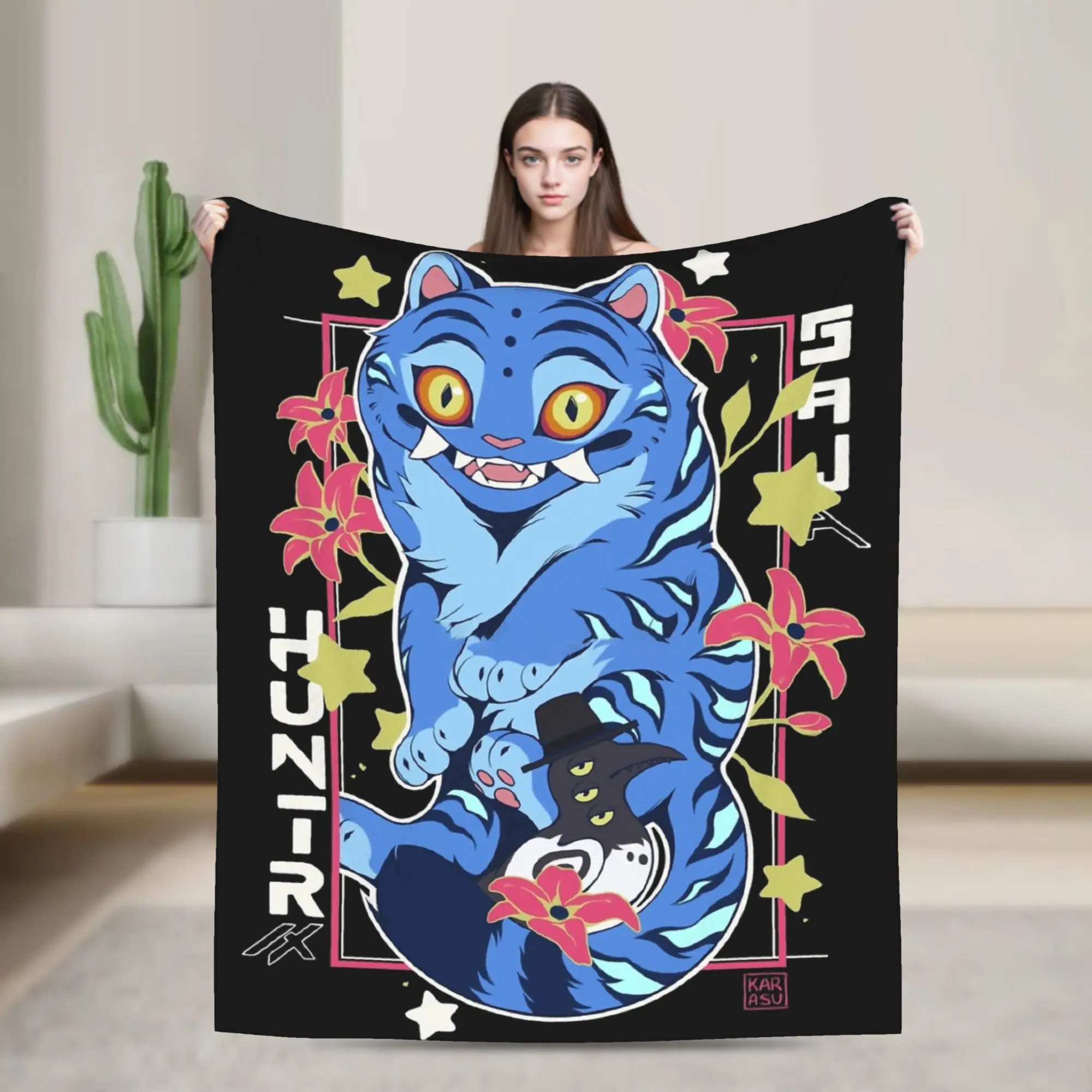 Derpy Tiger Cat Coperte lavorate a maglia in pile Huntrix Kpop Demon Hunters Coperte leggere e sottili per la trapunta della camera da letto del divano di casa