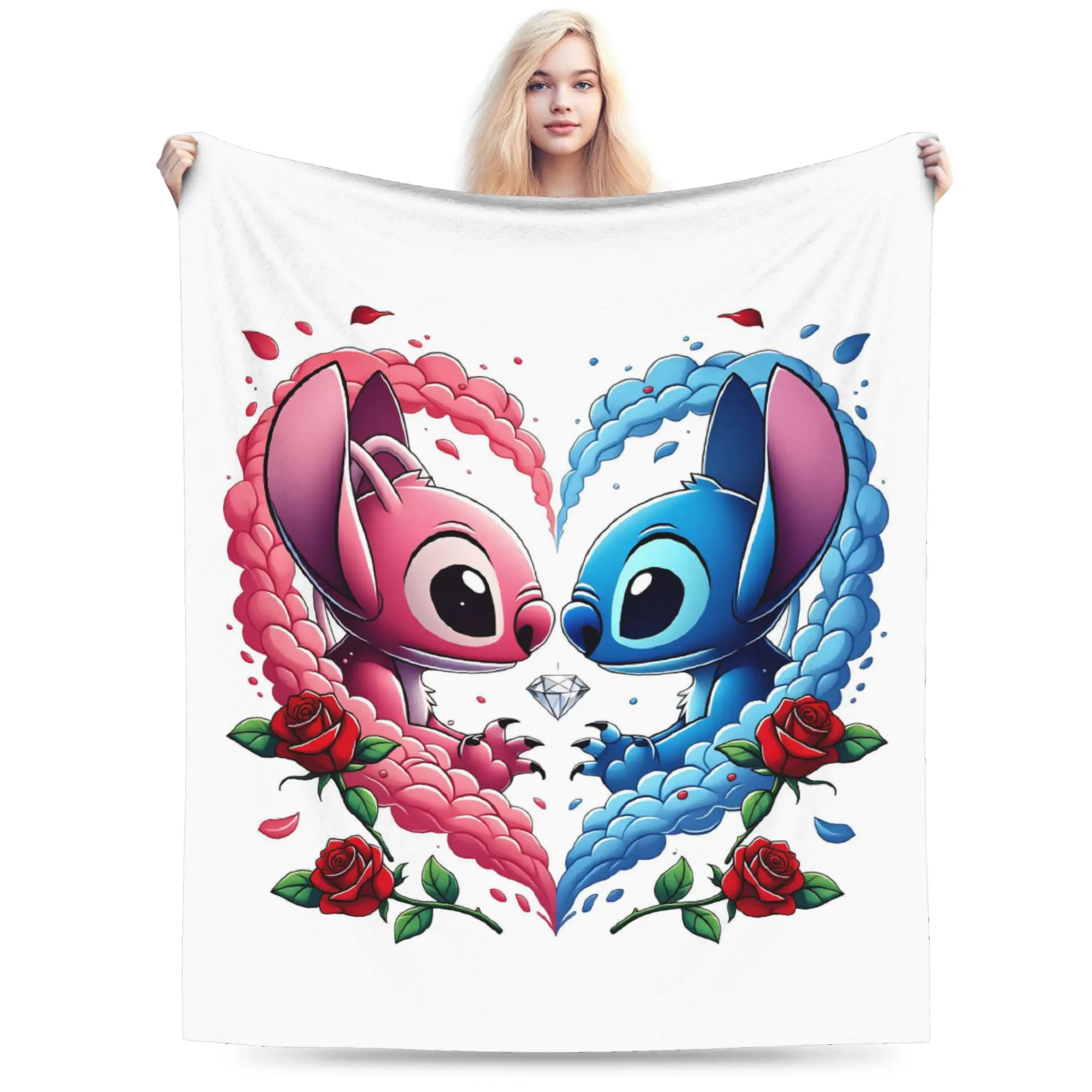 Coperta Morbida Decorativa per Studenti, Felice San Valentino, Stitch & Angel Heart (2), Plaid in Flanella per Copriletto