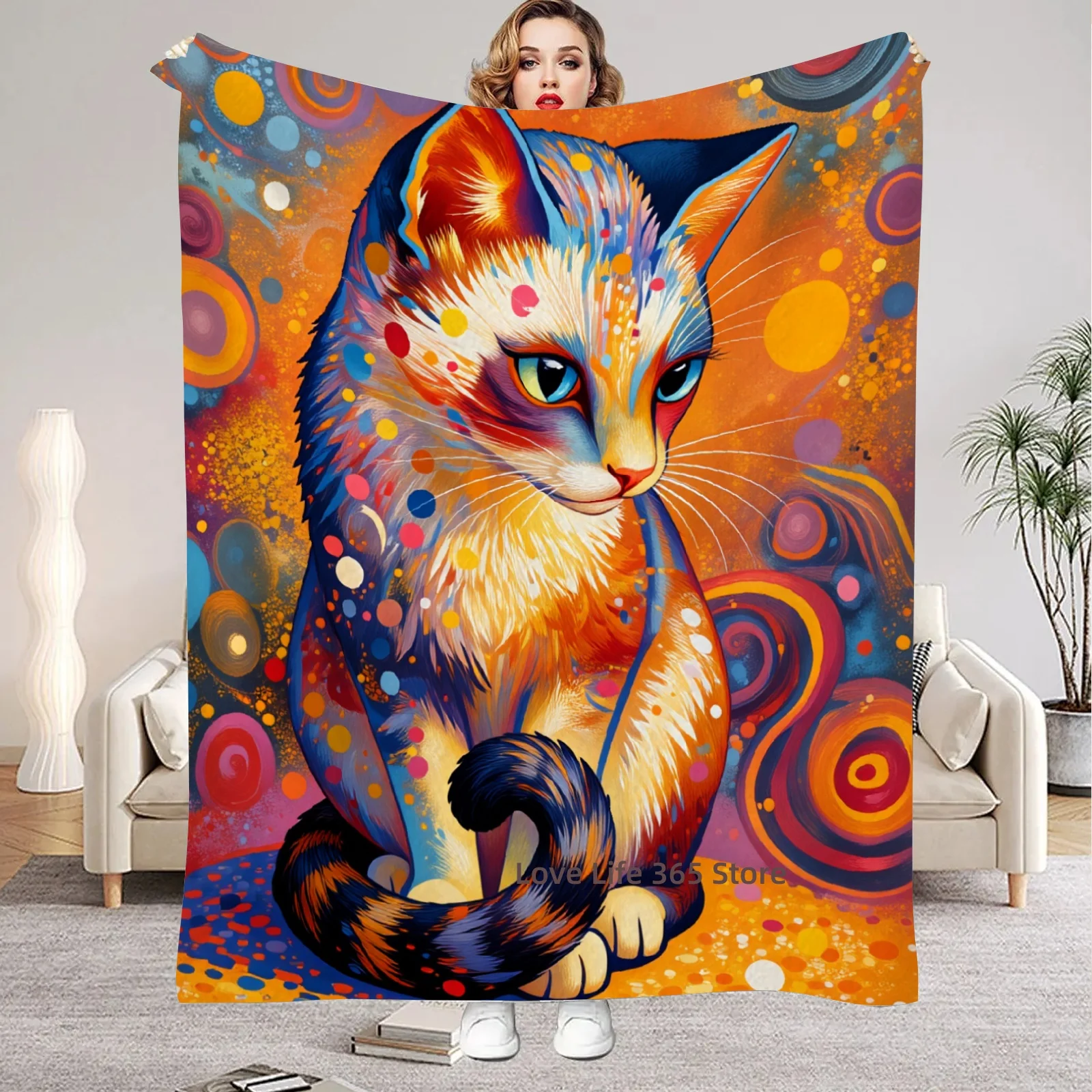 Coperta in flanella Strange Cats per adulti, morbida, perfetta come regalo di compleanno, per casa, letto, divano, viaggi all'aperto, coperta astratta in stile pop art