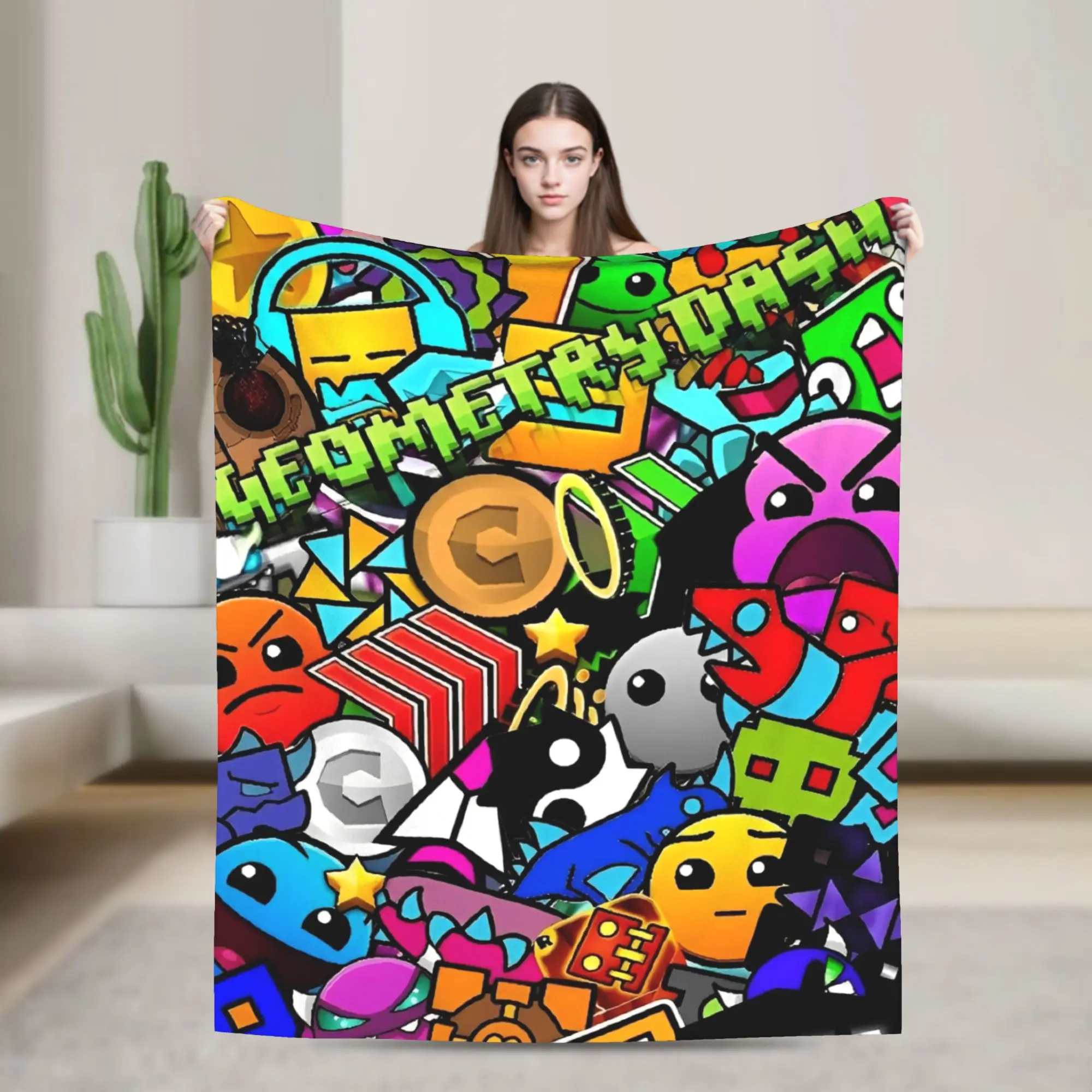 Coperta da gioco con motivo geometrico, coperta da picnic in flanella, per divano letto, calda e morbida, copriletto di qualità personalizzato, regalo di compleanno