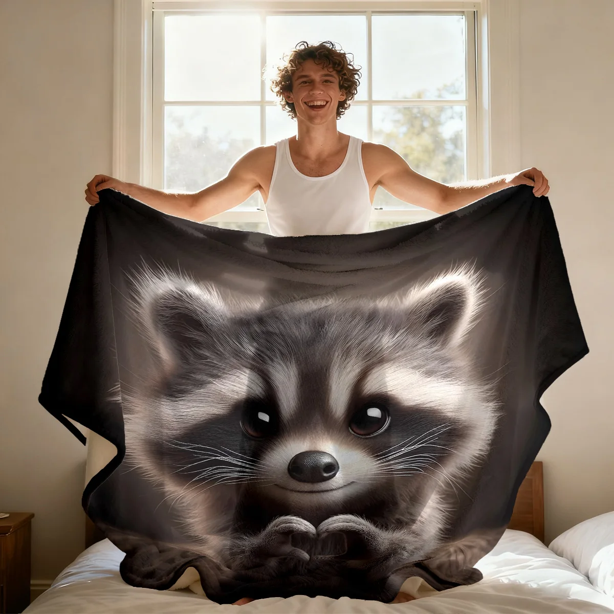 1pc coperta di flanella stampata con animali procione multi formato soggiorno divano pisolino coperta per il tempo libero lavabile in lavatrice