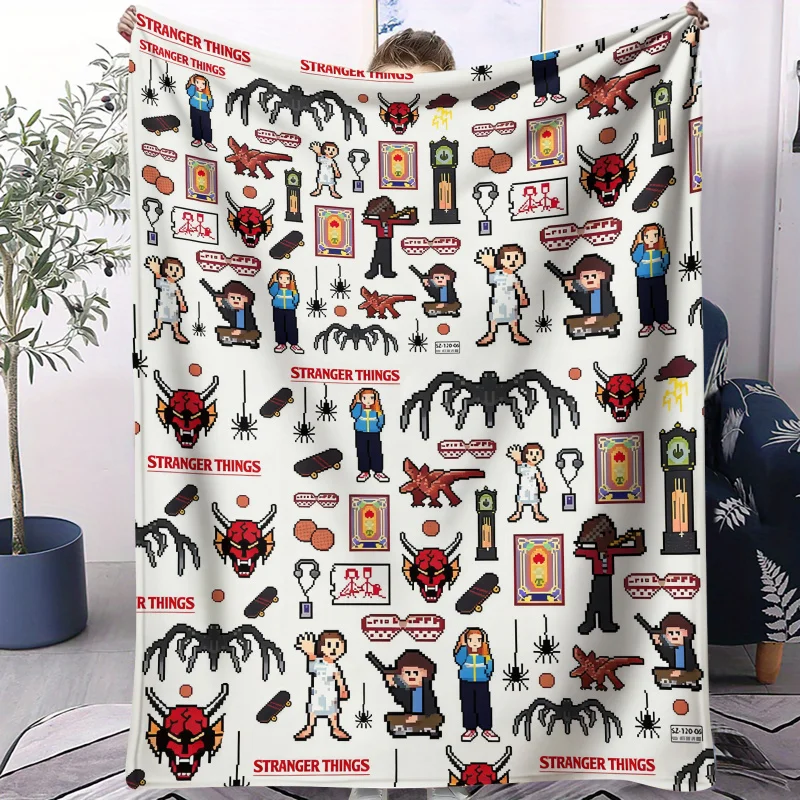 Coperta in Flanella Morbida e Calda con Collage di Adesivi S-Stranger T-Things, Multifunzionale e Decorativa