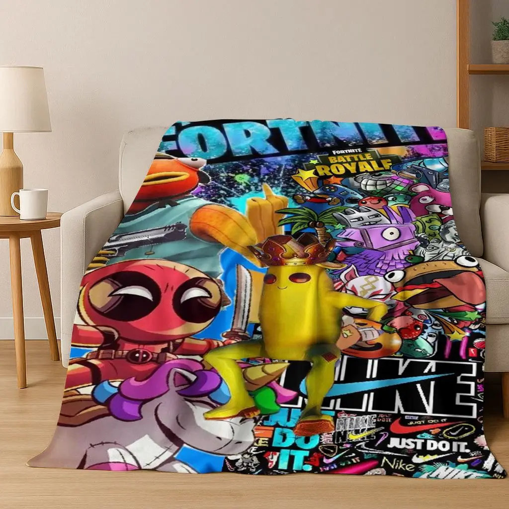 Gioco F-Fortnite Cartoon Gamer Coperta di flanella per letto Camera da letto Soggiorno, Morbida coperta calda da campeggio Picnic Regalo per bambini