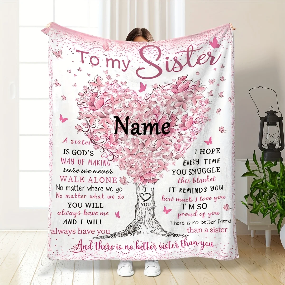 Nome personalizzato lettera d'amore per la sorella coperta in pile, adatta per divano, letto, compleanno, bambini, amici, regalo