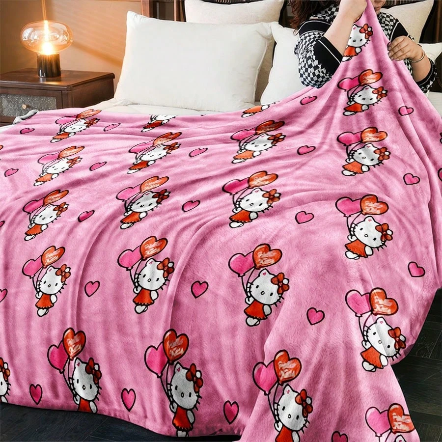 Coperta in flanella Sanrio Hello Kitty - Stampa 2D, motivo palloncini a cuore, per camera da letto, soggiorno, campeggio, regalo perfetto