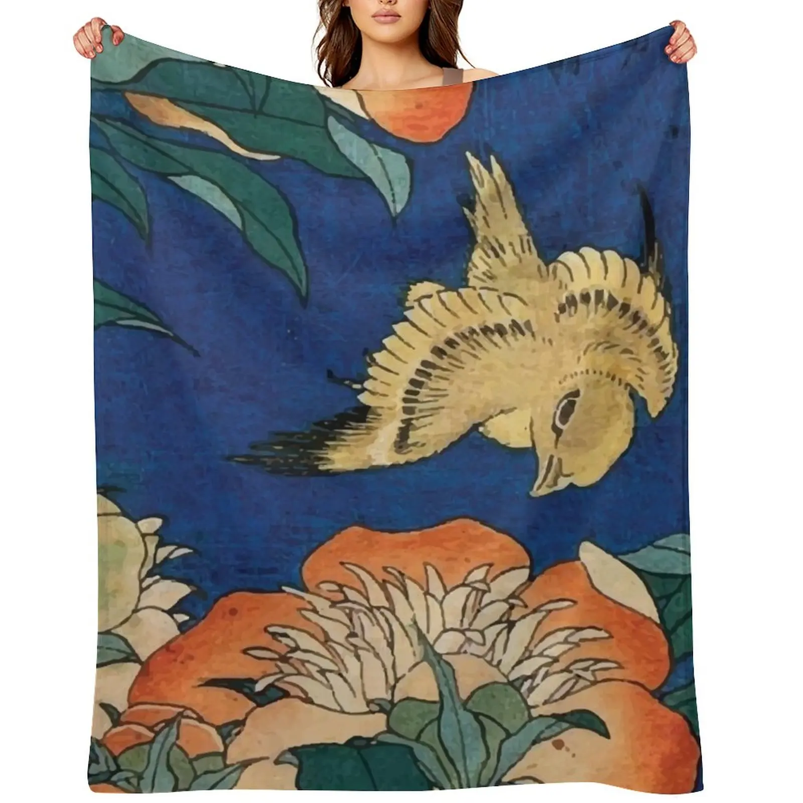 Katsushika Hokusai | Coperta da tiro canarino e peonia Farciti decorativi per bambini Coperte extra large