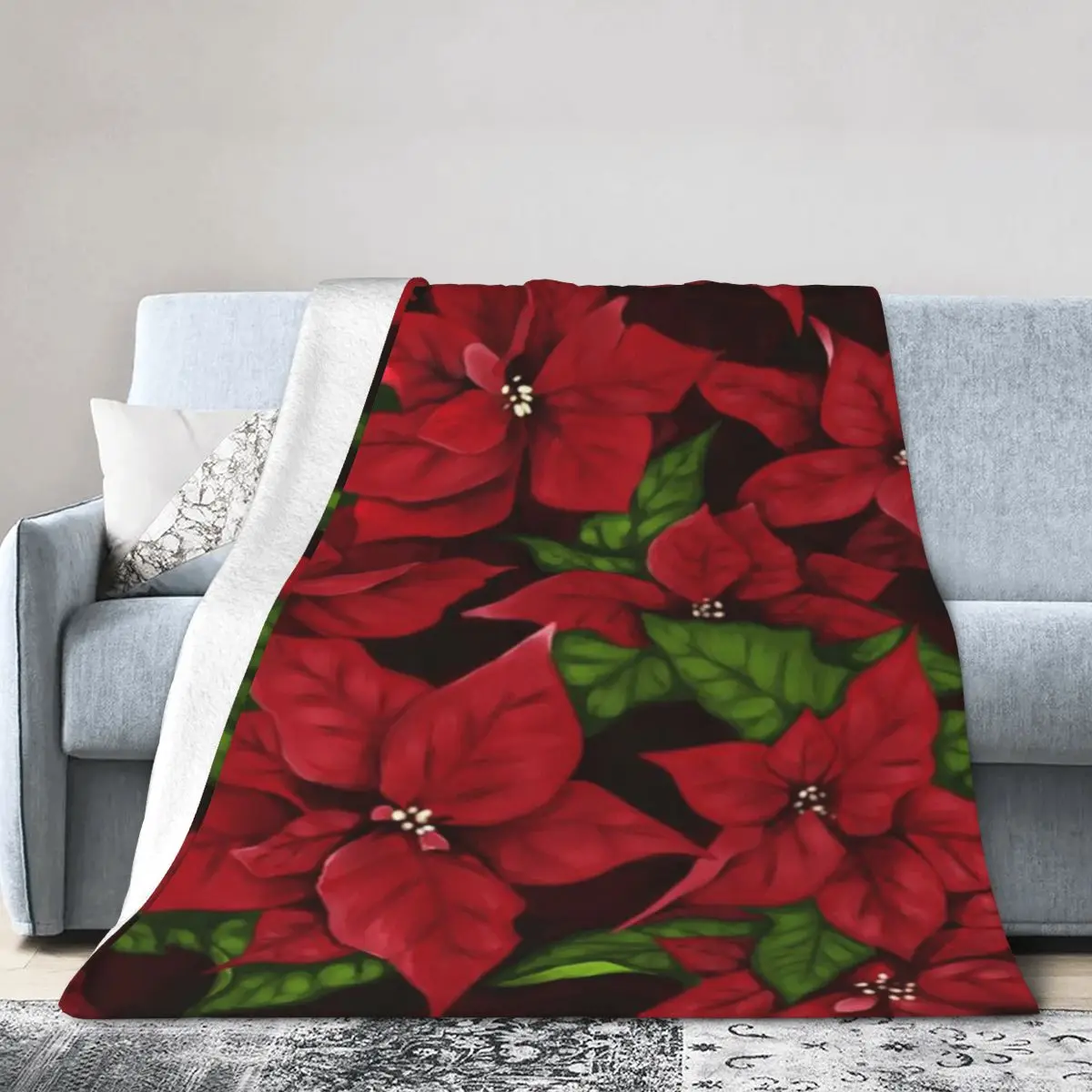 Poinsettia - Decorazioni per la casa personalizzate con stella di Natale, calde una coperta in micropile ultra morbida