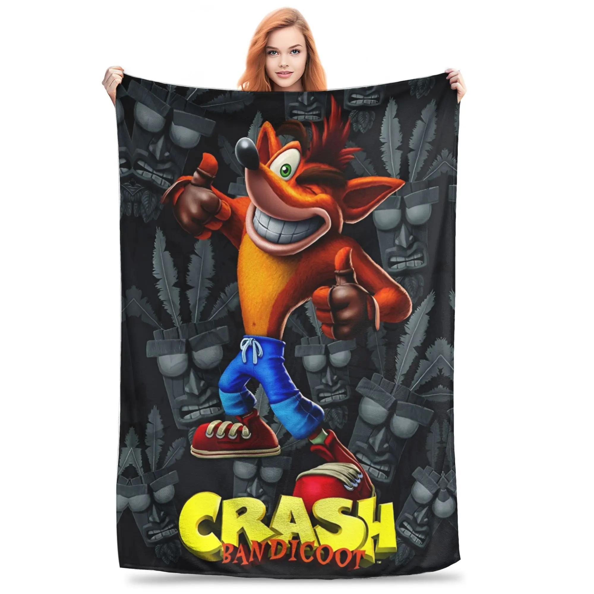 Crashs Bandicoots Coperta da tiro per cartoni animati per divano Videogioco Coperta morbida e sfocata in peluche Copriletti di diverse dimensioni per tutte le stagioni