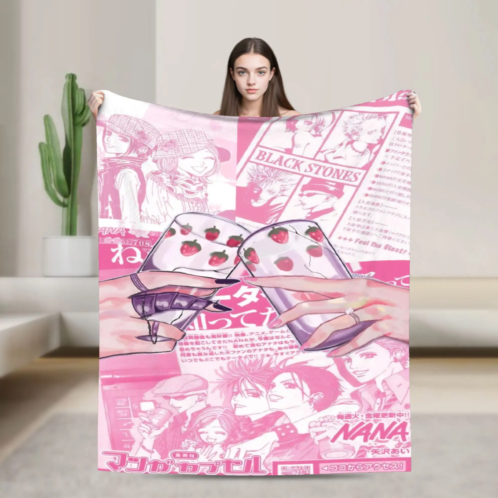 Nana Hachi Manga Coperte di flanella Anime Fantastiche coperte da tiro per divano Biancheria da letto Lounge Trapunta sottile in peluche 125 * 100 cm